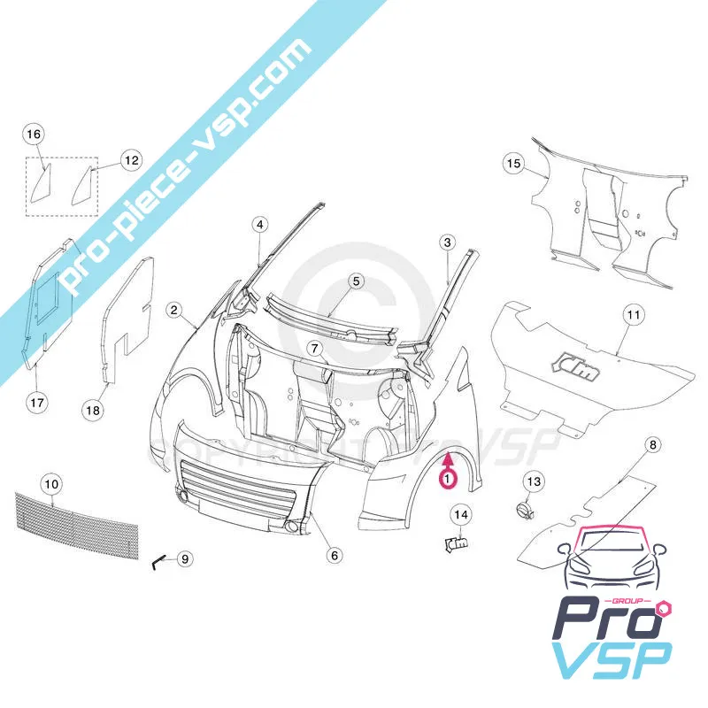 Aile avant coté chauffeur adaptable en fibre pour voiture sans permis :